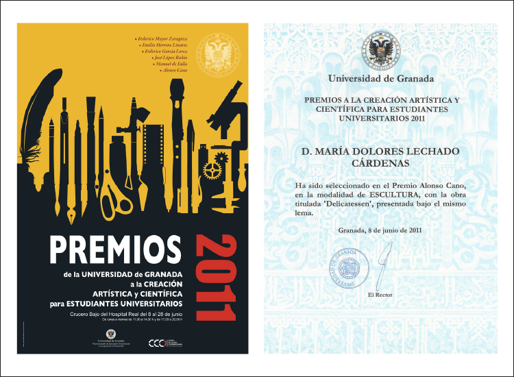 Seleccionada en el Premio Alonso Cano, en la modalidad de escultura. Exposicion colectiva en la Sala de exposiciones del Crucero bajo del Hospital Real. Granada